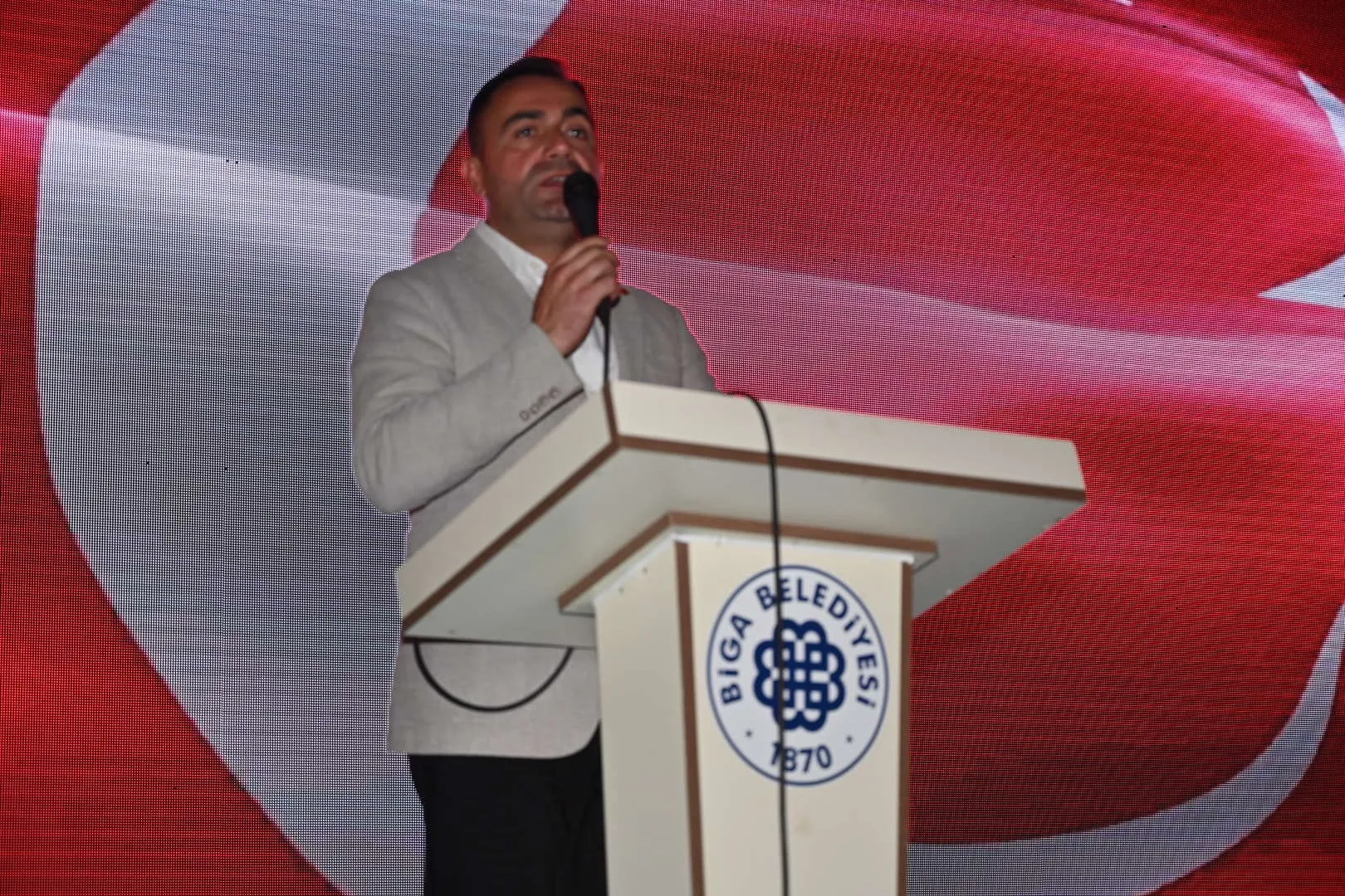 Saygı Duruşu ve İstiklal Marşı’nın okunmasıyla Biga Kaymakamı Erdinç Dolu ve Biga Belediye Başkanı Bülent Erdoğan konuşma yaptı.
