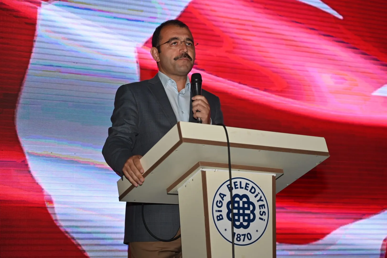 Biga Kaymakamı Erdinç Dolu ise yaptığı konuşmada, “Hain darbe teşebbüsünün 6. yılında meydanların darbecilere teslim etmeyen, 15 Temmuz gecesi havalimanlarını, köprüleri, yolları, meydanları doldurarak Fetullahçı terör örgütü mensubu hainleri hezimete uğratan 7’den 70’e tüm vatandaşlarımıza teşekkür ediyorum. O gece 251 şehidimiz binlerce gazimiz var. Şehitlerimize Allah’tan rahmet diliyorum. Mekanları cennet olsun. Rabbim merhametiyle onları kuşatsın. Gazilerimize de sağlık, afiyet ve uzun ömürler diliyorum. O gece demokrasi mücadelesinin yanında yer alan tüm siyasi partilerimize ve sivil toplum kuruluşlarımıza hukuk devletinin, hak ve özgürlüklerinin ülkemizin ve milletimizin geleceğinin yanında yer aldıkları için de şükranlarımı sunuyorum. 15 Temmuz darbe teşebbüsü gecesinde o vatan haini işbirlikçileri aracılığıyla ülkemizi tehdit edeceklerini, devletimizi ele geçireceklerini sanarak harekete geçenler ertesi günü akşam olmadan milletimiz tarafından hüsrana uğratılmıştır. O gece darbecilerin gasp ettikleri silahları, tankları, helikopterleri, uçakları milletimize karşı hiç tereddüt etmeden acımasızca kullanmıştır. Her şeyi hesap etmişler ancak bir şeyi unutmuşlar. O da bu tanklardan da, bu silahlardan da daha üstün olan bu milletin iman dolu yüreği oldu. Binlerce yıllık geçmiş tarihe sahip bu büyük millet her defasında kutsalına uzanıldığı zaman canını seve seve vereceğini işte bir kez daha o gece ortaya koymuştur. İnşallah bu birlik ve beraberlik yürüyüşümüz ilelebet devam edecek” dedi.