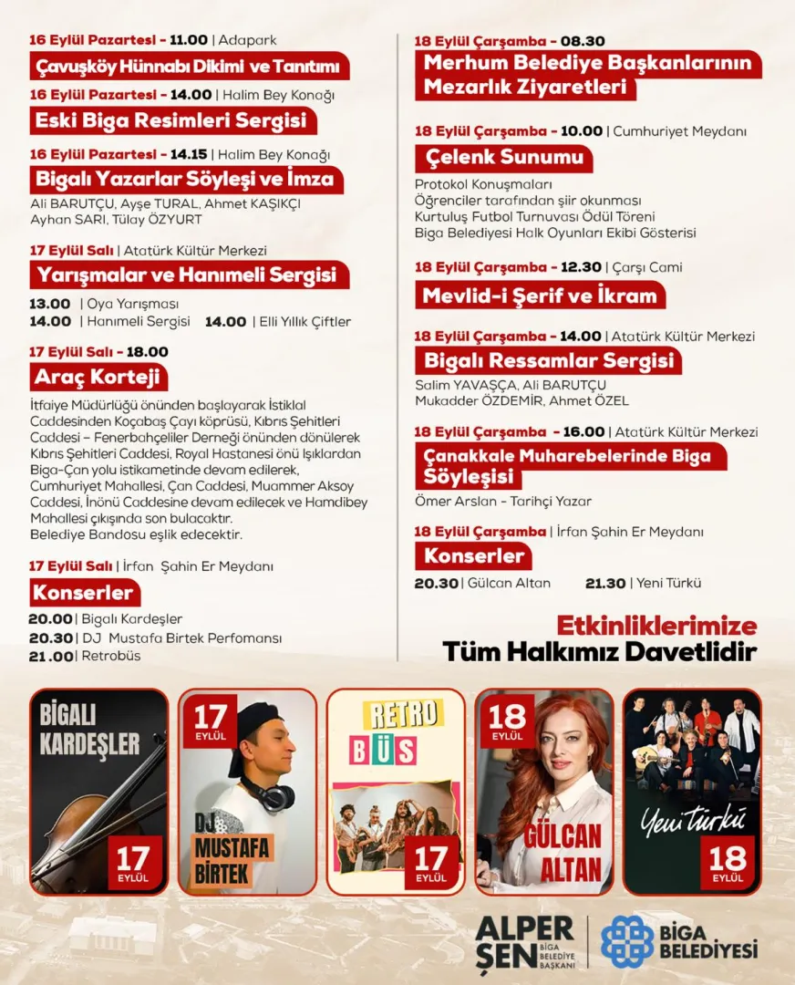 18 Eylül Biga’nın Kurtuluşu’nun 102. Yıl Dönümü Kutlama Programı