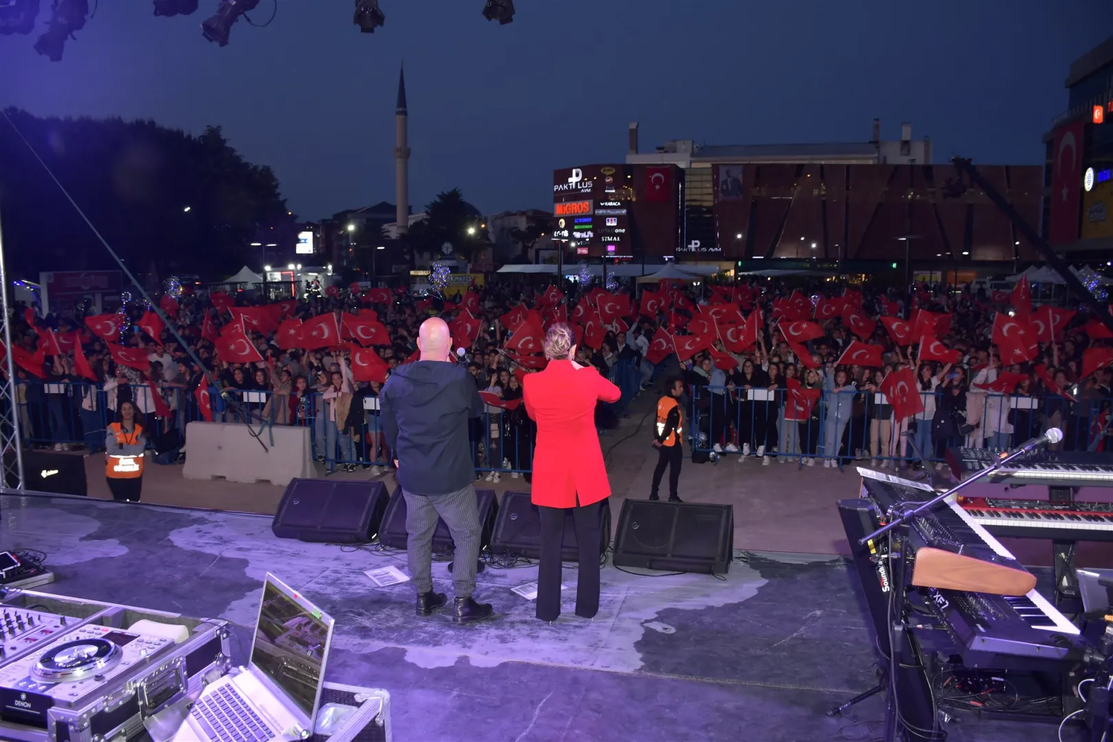 Binlerce kişinin katılımıyla coşku içinde geçen gece, 10. Yıl Marşı eşliğinde atılan havai fişek gösterisiyle sona erdi.