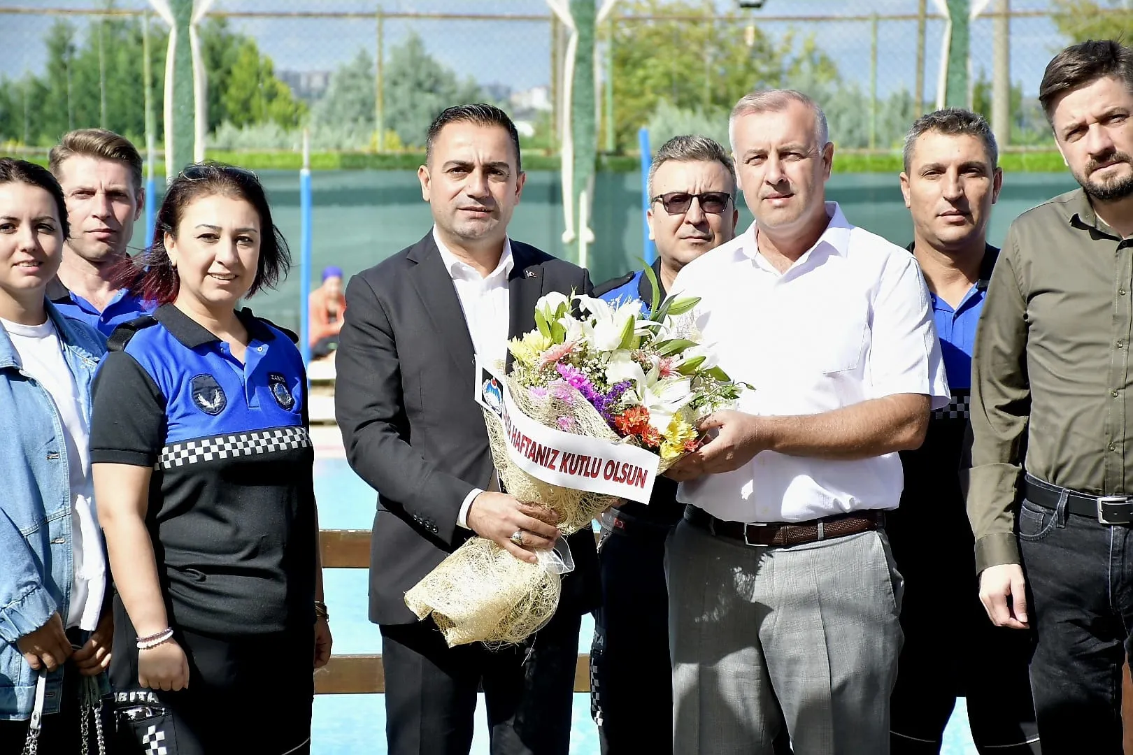 Başkan Erdoğan program sonunda Zabıta Müdürü Necmi Şencan’a çiçek takdim etti.