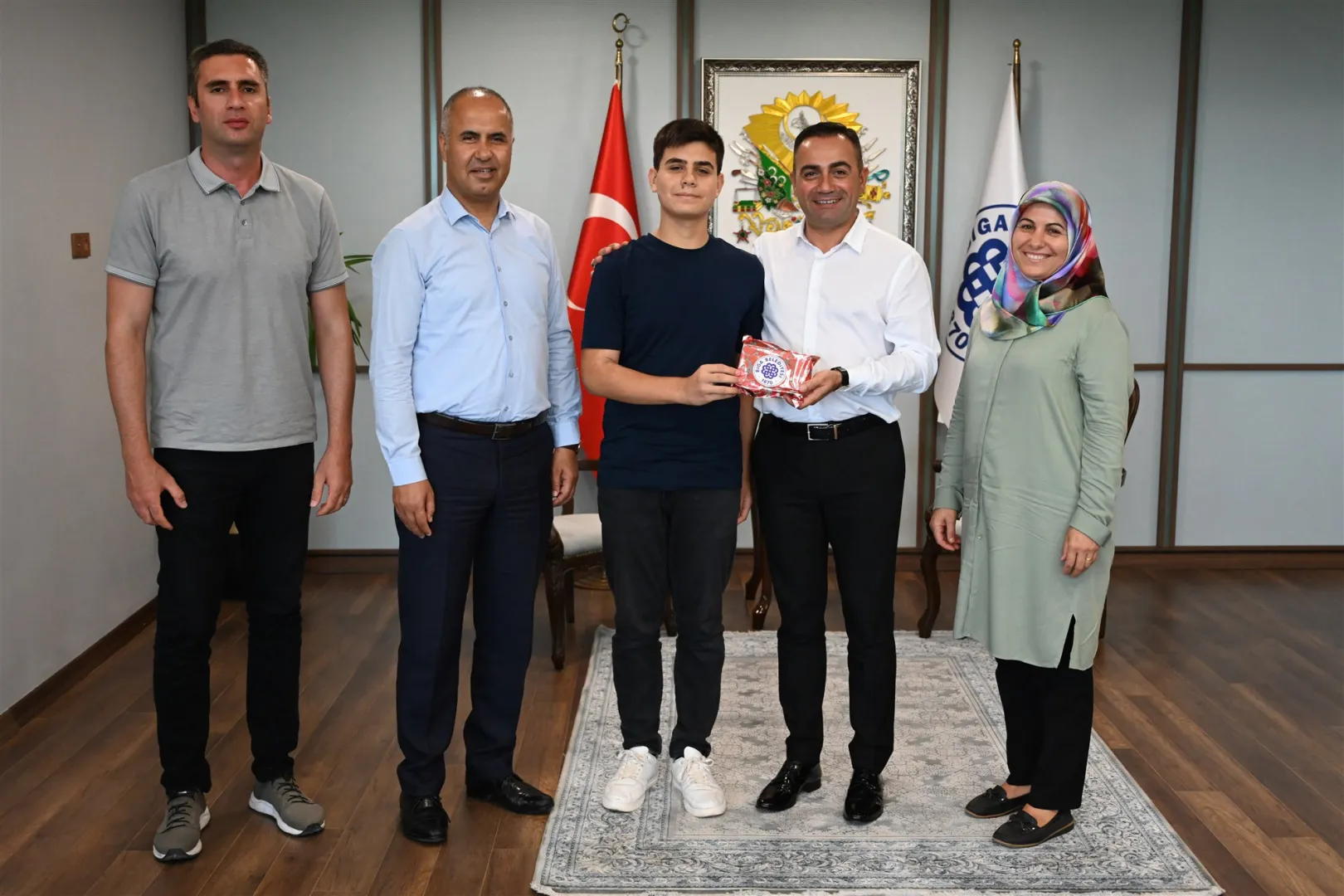 Biga Belediye Başkanı Bülent Erdoğan, Liselere Geçiş Sınavı’nda (LGS) Türkiye genelinde yüzde 1’lik dilime girme başarısı gösteren öğrencileri ve öğretmenlerini misafir etti. Biga İlçe Milli Eğitim Müdürü Erkan Bilen’in de katıldığı ziyarette öğrencileri tek tek tebrik eden Başkan Erdoğan, akıllı saat hediye etti.