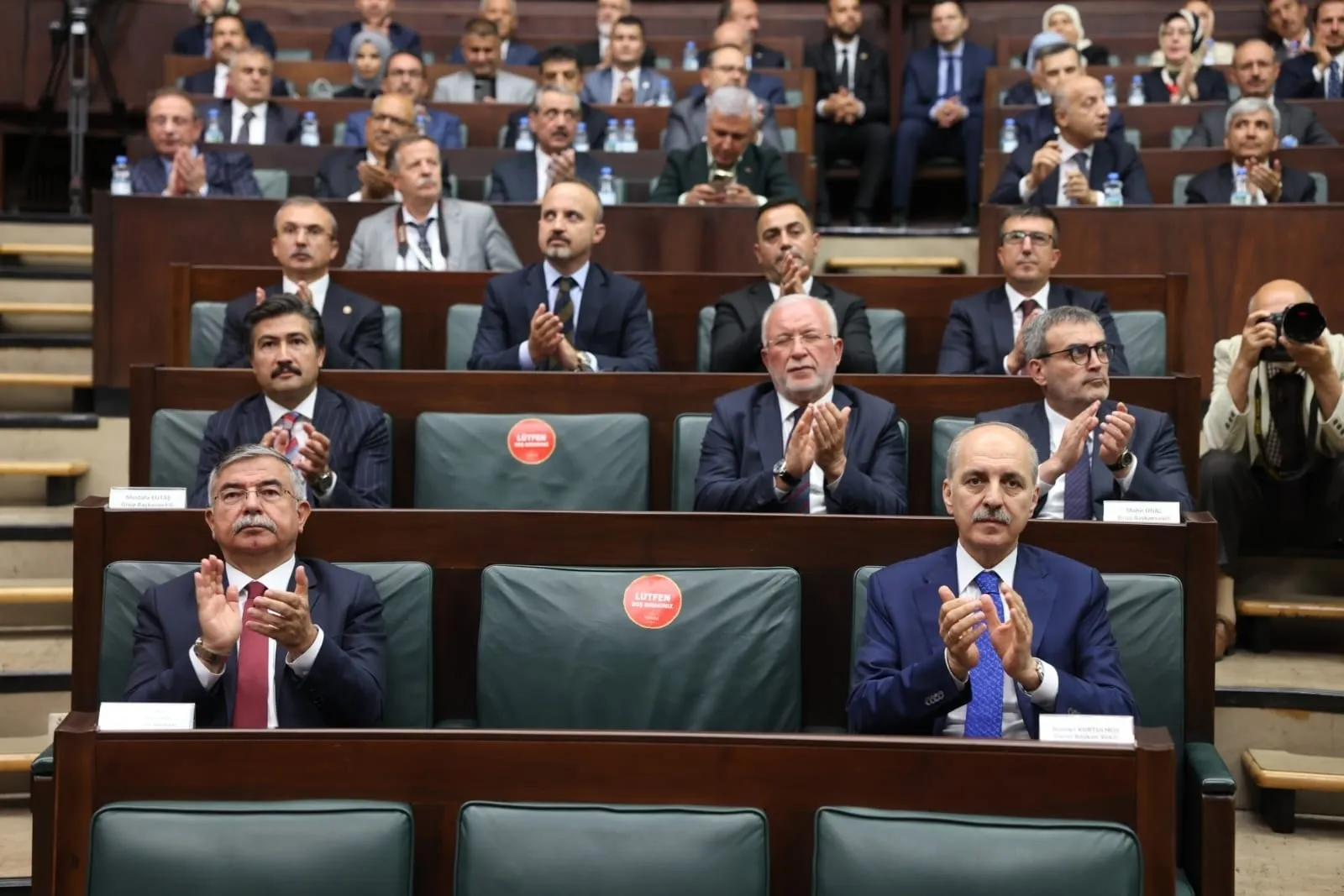 AK Parti TBMM Grup Toplantısı'na katılan Başkan Erdoğan ve Başkan Borazan, AK Parti Grup Başkanvekili ve Çanakkale Milletvekili Bülent Turan'ın yanında toplantıyı takip ederek Cumhurbaşkanı Recep Tayyip Erdoğan'ı dinledi.