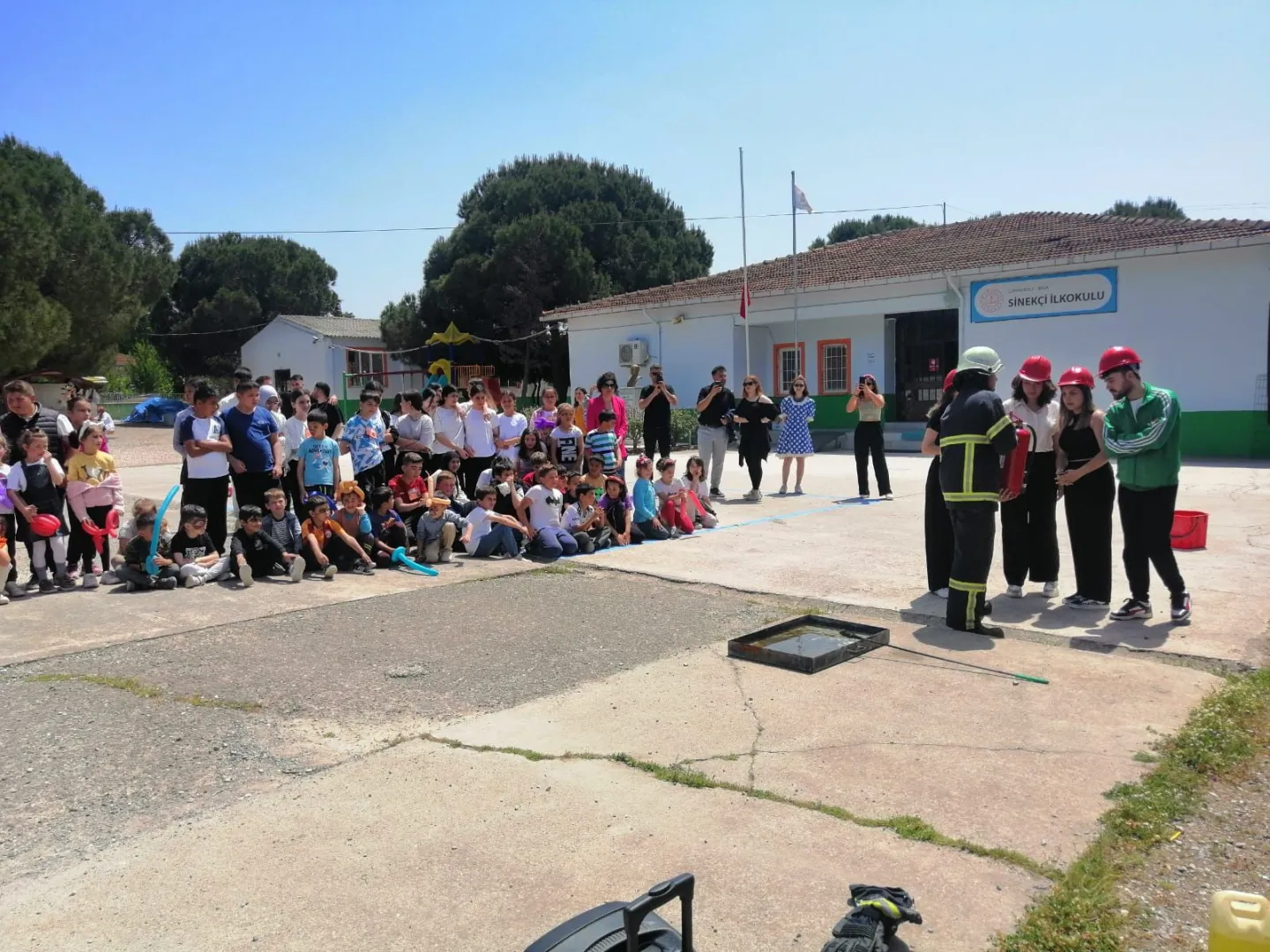 İtfaiye Müdürlüğü ekiplerimizce ÇOMÜ öğrencileri ile birlikte sosyal sorumluluk projesi kapsamında Sinekçi Köyü İlk-Ortaokulu’nda Yangın Bilgisi ve Yangın Söndürme Cihazlarının eğitimi verildi.