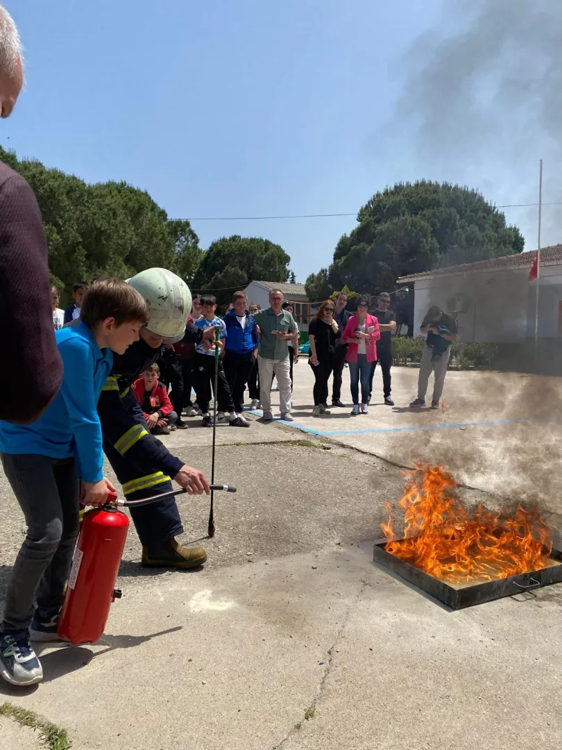 Eğitim sonrasında itfaiye ekiplerimiz ve öğrenciler kontrollü ateş yakarak tatbikat gerçekleştirdi.