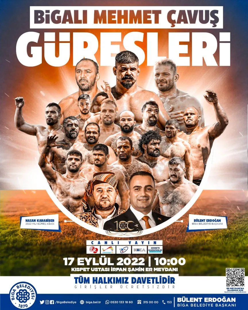 Biga Belediye Başkanı Bülent Erdoğan himayelerinde, Güreş Ağası Hasan Karabiber'in destekleriyle 17 Eylül Cumartesi günü saat 10:00’da başlayacak olan Bigalı Mehmet Çavuş Yağlı Pehlivan Güreşlerinin 400’ün üzerinde pehlivanı ağırlaması beklenirken, Kıspet Ustası İrfan Şahin