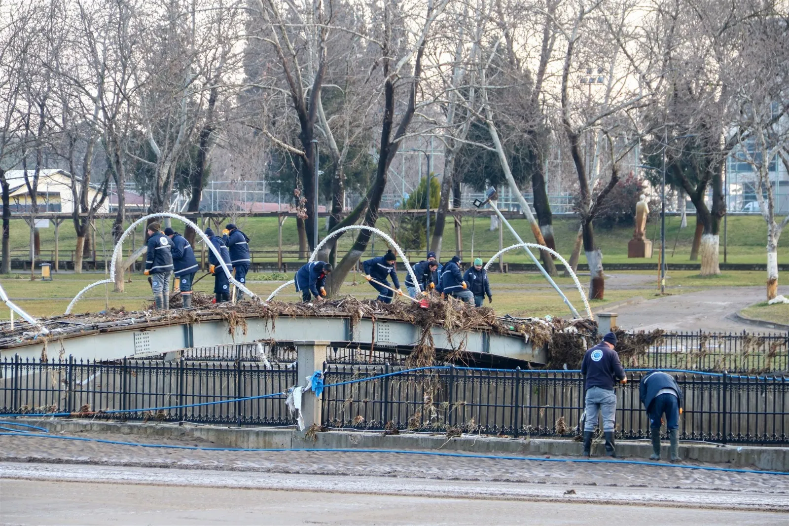 Biga Belediyesi ekipleri, Biga’da etkili olan çok kuvvetli yağış ve kar erimesiyle birlikte taşan Kocabaş Çayı etrafında temizlik çalışmaları yapıyor.
