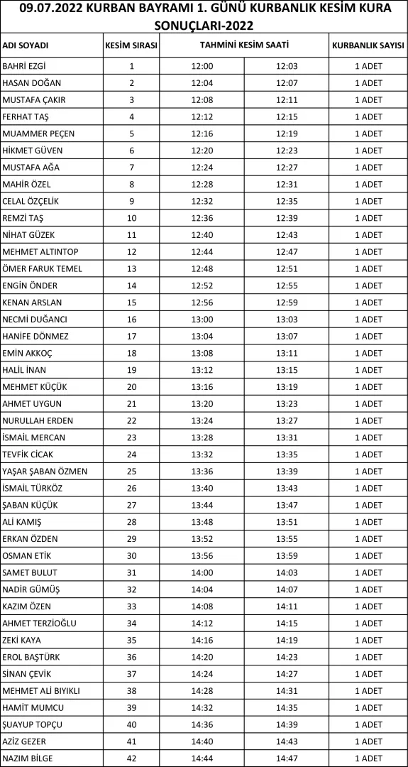 Biga Belediyesi Kurban Kesimi Kura Sonuçlarına aşağıdaki listeye bakarak takip edebilirsiniz.