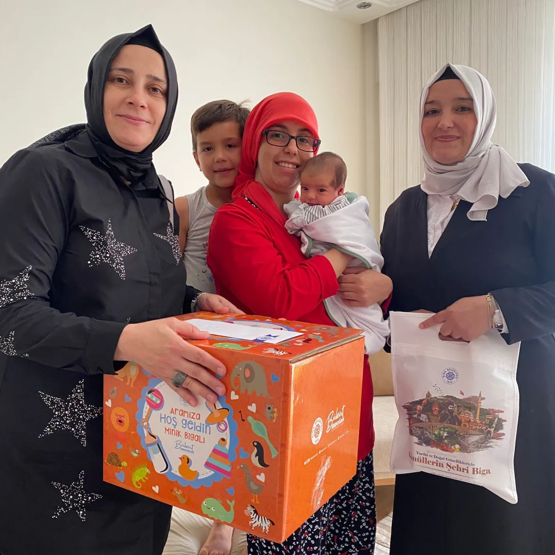 Proje kapsamında son olarak, Biga Belediye Başkanvekili Nesrin Sirkeci ve Biga Belediye Başkanı Bülent Erdoğan’ın eşi Feride Erdoğan, yeni bebeği olan ailelerin sevinçlerine ortak oldu.