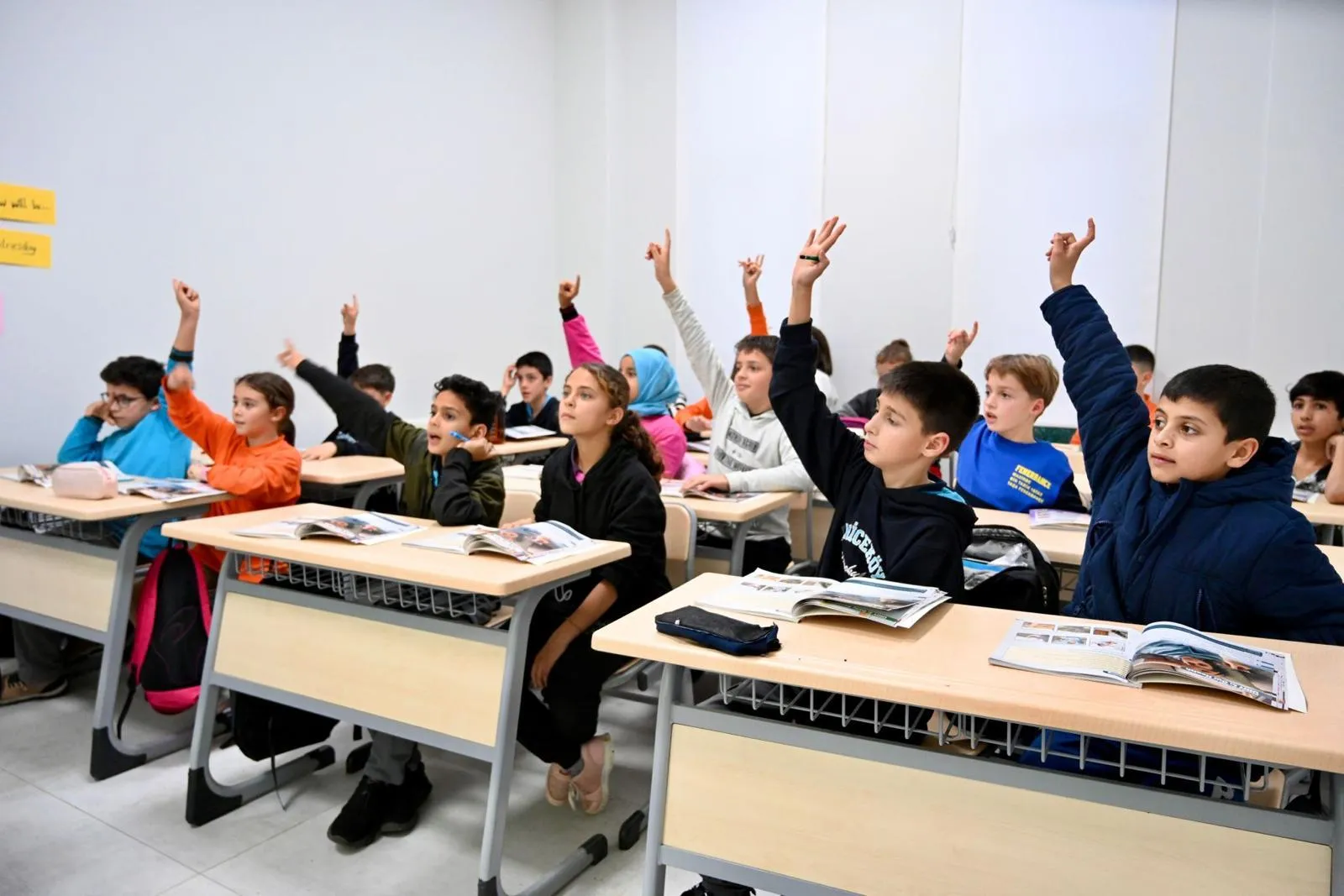 ile çocuklarımızın özgüvenle kendilerini ifade etmeleri sağlandı. Ortaokul öğrencilerimiz için ayrıca dil bilgisi yarışmaları ve kelime oyunları ile dersler zenginleştirildi.