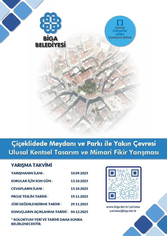Biga Belediyesi’nin düzenlediği bu ulusal fikir yarışması, kentin merkezindeki tarihî ve stratejik öneme sahip Çiçeklidede Meydanı ve Parkı’nın yeniden ele alınmasını amaçlamaktadır.